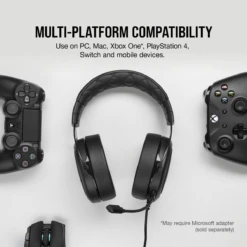 HS55 STEREO is lightweight yet durable to comfortably wear for hours of gaming. Comfortable soft memory foam and leatherette earcups. Weighing in at just over half a pound (273g) with adjustable headband and ear cups. On-ear volume roller and flip-to-mute mic put control within easy reach. High-quality, custom-tuned 50mm neodymium audio drivers deliver excellent sound with the range needed to hear everything on the battlefield. Captures your voice with terrific clarity thanks to an omni-directional microphone with a flip-to-mute function, Discord Certified for crystal-clear communication and outstanding sound. Easily connect to PC, console, or mobile devices with a 3.5mm audio jack.