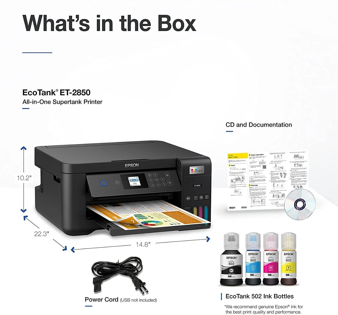 - Hassle-free ink tank system: Enjoy mess-free refills with key-lock bottles and front-facing tanks