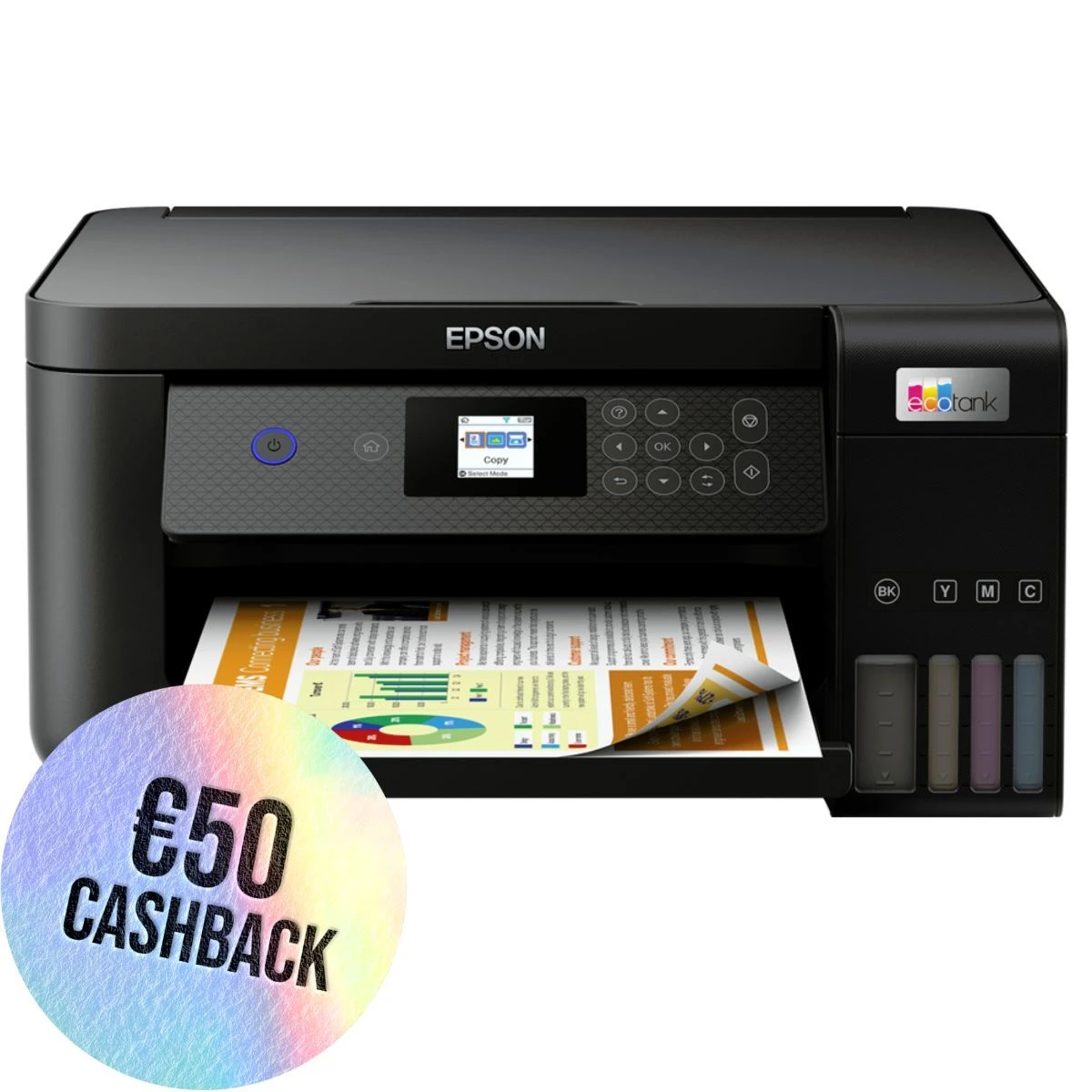 Save up to 90% on printing costs with Epsonās cartridge-free EcoTank printers. Supplied with high yield ink bottles, the integrated ink tanks are easy to fill thanks to the specially engineered ink bottles. With no cartridges to replace, flexible connectivity features and double-sided printing, this is the perfect printer for anyone looking for high-quality prints at an incredibly low cost per page. EcoTank provides hassle-free home printing – the ultra-high capacity ink tanks allow mess-free refills and the key-lock bottles are designed so only the correct colour can be inserted. This economical printer saves you up to 90% on printing costs and comes with an extra black ink bottle for up to 3 years’ worth of ink included in the box. One set of ink bottles delivers up to 7,500 pages in black and 6,000 in colour, the equivalent of up to 72 cartridges worth of ink! This app enables you to control your printer from your smart device. You can print, copy and scan documents and photos, set up, monitor and troubleshoot your printer, and let your creativity flow with a range of artistic templates. Featuring a 3.7cm colour LCD screen, automatic double-sided printing, borderless photo printing and print speeds of up to 10.5 pages per minute, you can speed through a variety of tasks with ease.