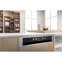 Put away the tea towel and let this silver integrated dishwasher from Hotpoint do the hard work for you. It can hold 3 place settings, making it ideal for medium-sized households. If clean plates are few and far between but you have guests coming over, there’s a handy quick wash which only takes 30 minutes. So, you can carry on preparing a delicious meal while your cookware and cutlery is left sparkling. There’s also an Eco programme, that reduces the amount of energy and water used, meaning you’ll save money on your utility bills. And, because it dries each load with heat created during the wash, every drop of water will be gone when it comes to laying the table for dinner.