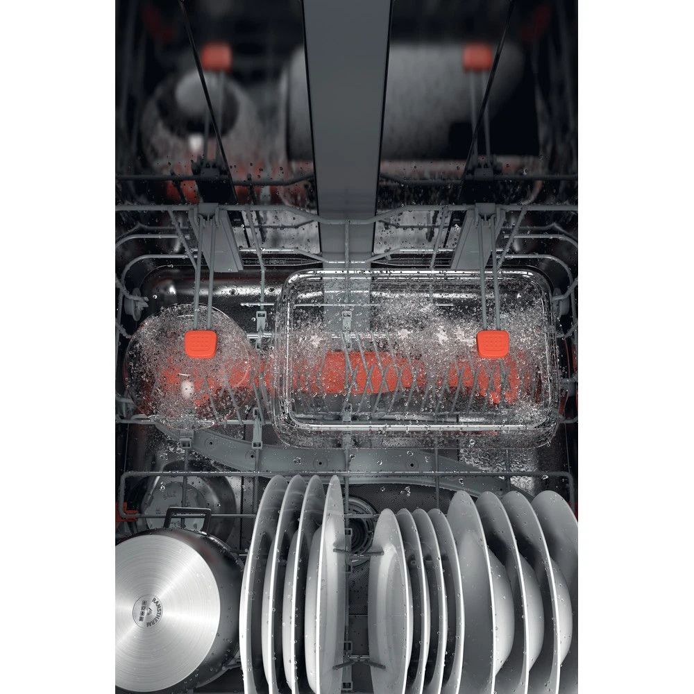 Save time and effort on the everyday washing up with the Hotpoint HFC 3C26 W SV UK Dishwasher in Black. Featuring our exceptional 3D Zone Wash Technology, experience 40% more washing power on your Pots and Pans, powerful extra jets scrub your pans in the bottom basket so you don’t have to! Our tough, long lasting stainless steel interior & 3-stage water filtration gives you effective, hygienic cleaning power that keeps bacteria at bay. Creating more space when you need it, FlexiLoad allows you to easily lift up the upper basket to fit in taller pots and dishes below. With enough space for up to 14 place settings, there’s room for the everyday clean-ups and after-party clear-downs. Including the Hotpoint Inverter Motor, thanks to new algorithms and improved insulation, our dishwashers now run at just 46db which is the same noise level as a library.