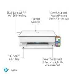 The HP Envy all-in-one printer is intelligently designed to deliver immersive graphics and rich black text when you print your everyday photos and documents. Seamlessly pair it with the HP Smart App that lets you print documents right from your smartphone. This printer also allows you to scan documents, share and create multiple copies – all from your phone. This printer features self-healing Wi-Fi that identifies and resolves network issues automatically. Getting started with this printer is simple and fast and you can perform multiple tasks like print, scan and copy from a single device.