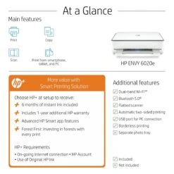 HP ENVY 6020e, All-in-One Wireless Printer, White Inc. 3 Months Instant Ink With HP+ (223N4B)