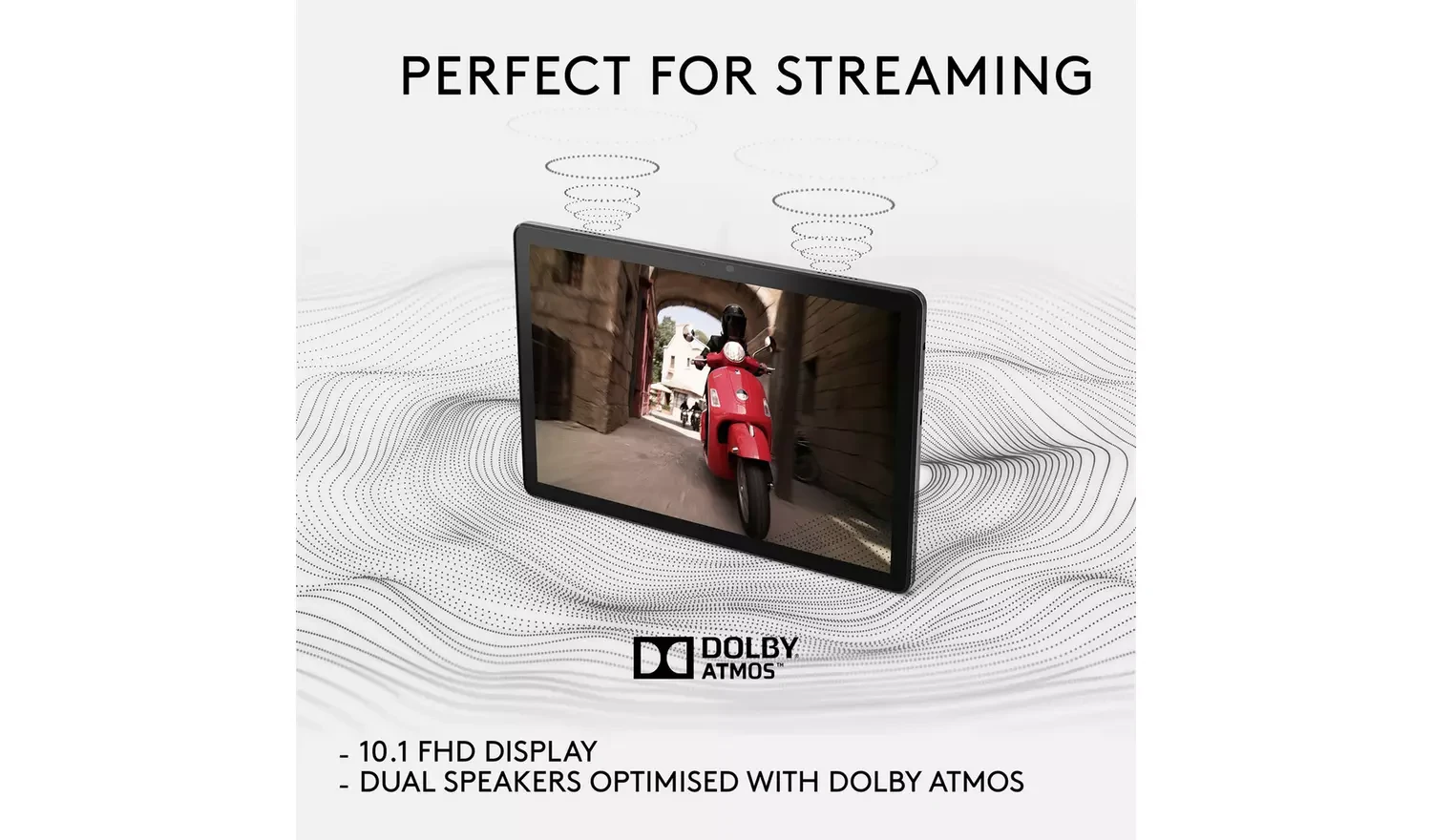 With the Lenovo Tab M10 tablet, you’ll have all your apps, websites, and media at your fingertips. The vibrant Full HD display makes your movies and TV shows look vivid and lifelike. And the dual speakers optimized with Dolby Atmos complement the visuals with amazing sound. You don’t need to worry about running out of power. With up to 10 hours of battery life, it can get you through a day of browsing and chatting with enough juice left to watch your favourite show in the evening.