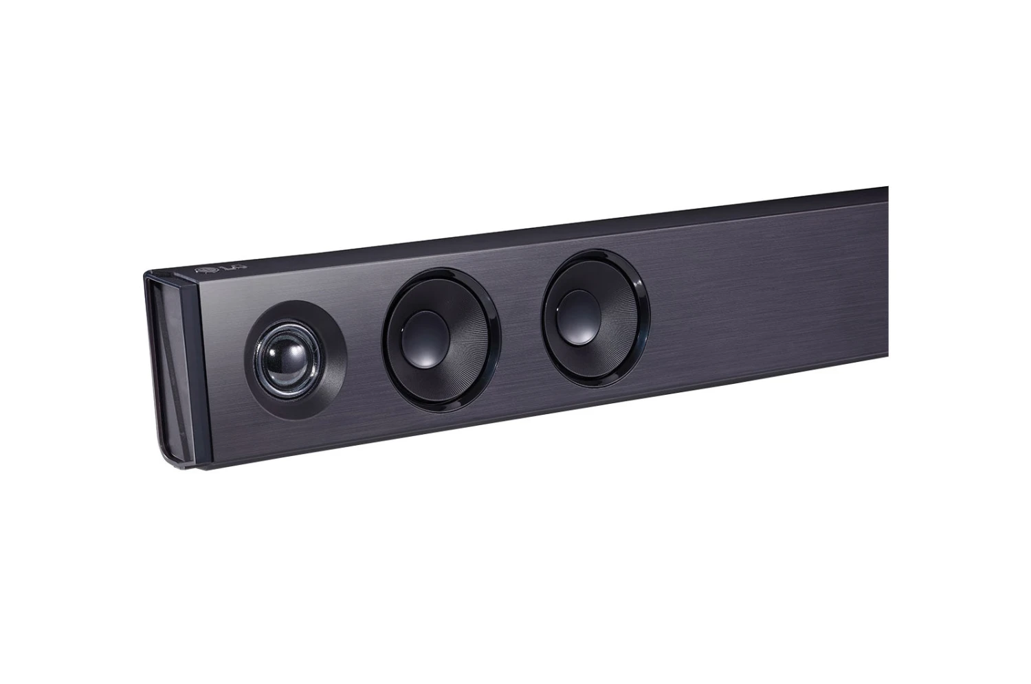 Adaptive sound control analyzes content in real time. When ASC detects that you are listening to Dialog it automatically adjusts to allow you crystal clear dialog, when it senses action it raises the sub for more impact. LG Auto Sound Engine optimizes your sound at any volume level and maintains precise frequencies at all times. This provides the appropriate sound balance regardless of the volume. Sound starts the moment you transfer audio to the Soundbar. The Soundbar remains in sleep mode but turns on and begins playing when the audio is sent via Bluetooth. LG Soundbar comes with a remote but you can choose to use your own TV remote as well. Feel free to connect to the device you wish with USB, Optical, Portable In and Bluetooth connectivity.