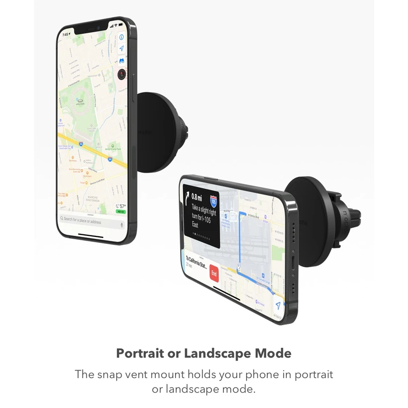 Keep your phone at the perfect viewing angle while you drive. mophie’s snap vent mount uses a convenient magnetic array to hold your phone in place, so it’s easy to make hands-free calls and follow GPS directions. A magnetic array holds on tight to your device to give you the perfect view while driving. Easily attach or detach your phone with just one hand so you can focus on the road. The snap vent mount enables you to make hands‑free calls and makes GPS directions easier to follow. Attach the metallic ring to any smartphone to make it instantly compatible with the magnetic array in the snap vent mount.