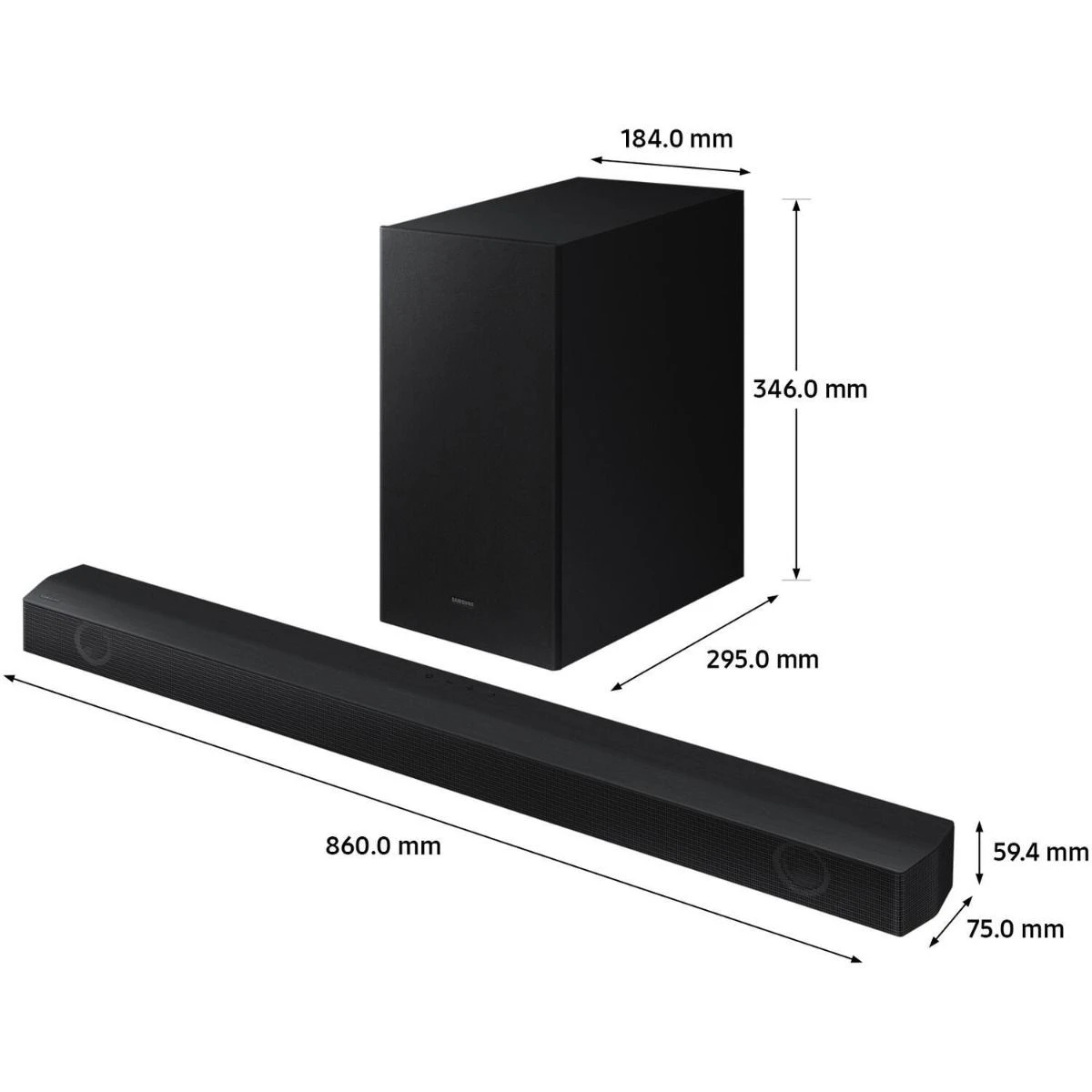 DTS Virtual X creates spacious 3D sound, including the feeling of height through audio processing techniques. Kick your listening experience up a notch with the subwoofer included with your Soundbar. It emphasizes bass for incredible sound that hits deeper and smoother notes — delivering theater-quality audio with your Soundbar. When you want to turn up the bass for maximum immersion, activate Bass Boost mode on the Soundbar. The included subwoofer takes the powerful, deeper bass to the next level, surrounding you with a fuller range of sound. The soundbar automatically analyzes your sound sources to optimize the audio track for your specific content. Whether it’s a loud sports match or a drama with quiet dialogue, you can count on the best soundbar to provide clear sounds for optimized TV viewing. The soundbar automatically analyzes your sound sources to optimize the audio track for your specific content. Whether it’s a loud sports match or a drama with quiet dialogue, you can count on the best soundbar to provide clear sounds for optimized TV viewing. Plug in your console and get the amazing sound effects you expect, right away. The auto settings optimize your sound to the game you’re playing while cross-talk cancellation technology removes distracting sounds so you hear clear audio from the right direction to help you gain the advantage. Wanting to game on a bigger screen? With a port to connect your HDMI cable, you get a rich audio experience while connected to your favorite devices.