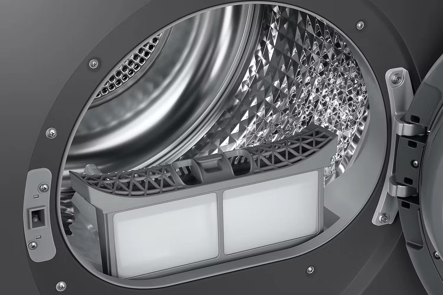 - Heat Pump – energy efficient technology reheats air inside the drum which mean you’ll use less electricity compared to traditional tumble dryers