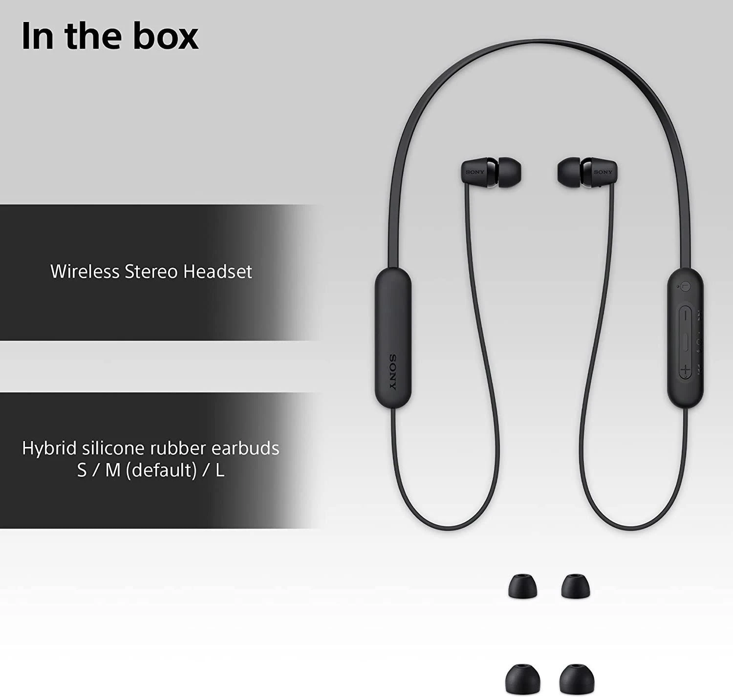 The WI-C100 redefine entry-level wireless in-ear headphones. With Sony’s exceptional sound quality, they offer a rich listening experience while a long 25hr battery life and splash-proof design give you peace of mind when you’re out and about. They’re also compatible with the Sony | Headphones Connect app, so you can adjust sound to suit your tastes. Enjoy up to 25 hours of non-stop music. And if your headphones are running low on power, a 10 minute quick charge will give you up to 60 minutes of playback. When an original music source is compressed, it loses the high-frequency elements that add detail and richness to a track. Our Digital Sound Enhancement Engine (DSEE) faithfully restores them to produce high-quality sound that’s closer to the original recording. Tailor your sound to your personal preference. Choose from a variety of presets to match the genre of music you’re listening to, or create and save your own custom presets using the equaliser feature on the Sony | Headphones Connect app. The sound tuning is intentionally designed to be well-balanced from low to high frequencies, and vocals are natural and clear. So the WI-C100 headphones match any music genre.