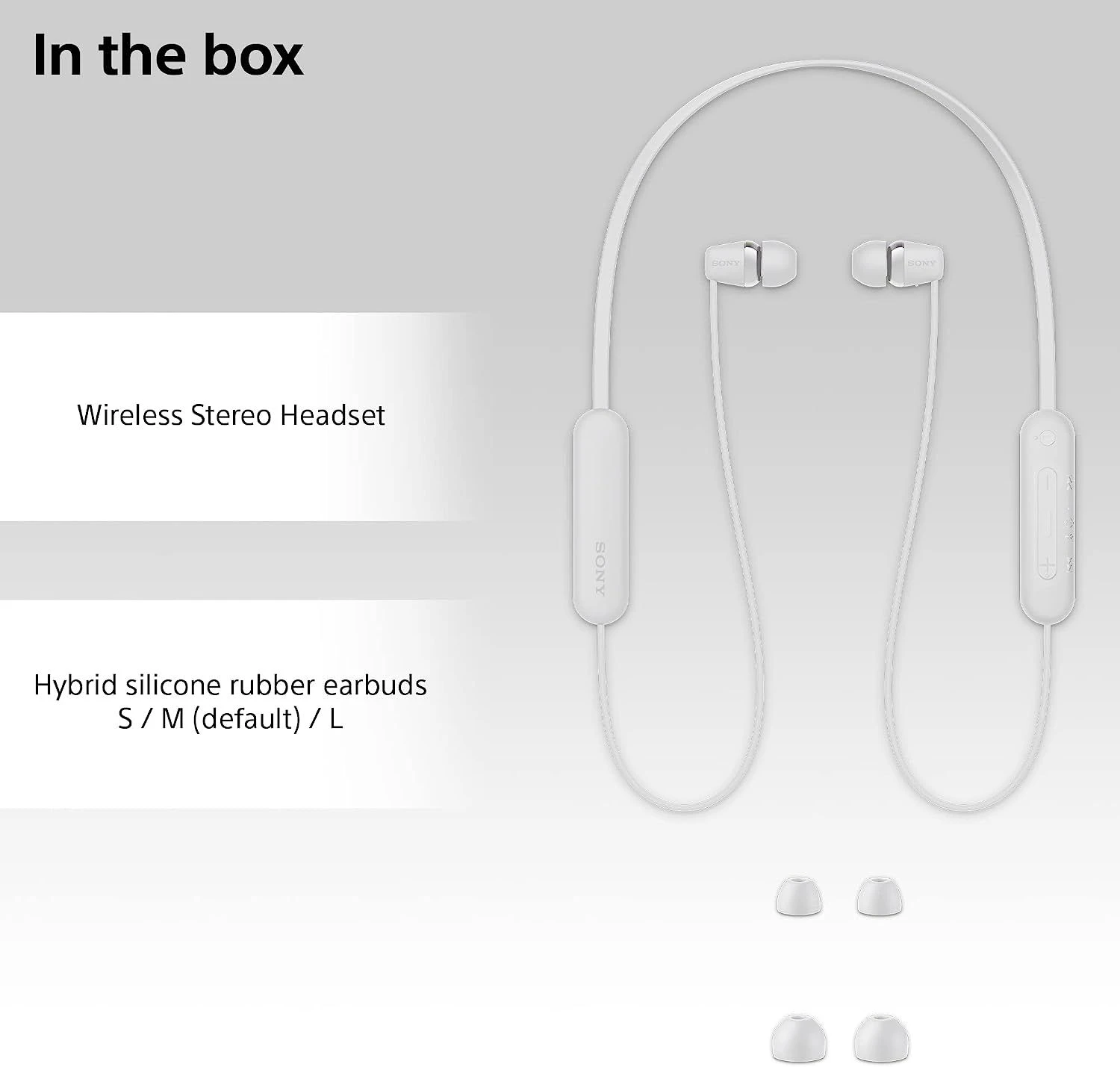 The WI-C100 redefine entry-level wireless in-ear headphones. With Sony’s exceptional sound quality, they offer a rich listening experience while a long 25hr battery life and splash-proof design give you peace of mind when you’re out and about. They’re also compatible with the Sony | Headphones Connect app, so you can adjust sound to suit your tastes. Enjoy up to 25 hours of non-stop music. And if your headphones are running low on power, a 10 minute quick charge will give you up to 60 minutes of playback. When an original music source is compressed, it loses the high-frequency elements that add detail and richness to a track. Our Digital Sound Enhancement Engine (DSEE) faithfully restores them to produce high-quality sound that’s closer to the original recording. Tailor your sound to your personal preference. Choose from a variety of presets to match the genre of music you’re listening to, or create and save your own custom presets using the equaliser feature on the Sony | Headphones Connect app. The sound tuning is intentionally designed to be well-balanced from low to high frequencies, and vocals are natural and clear. So the WI-C100 headphones match any music genre. With an IPX4 water resistance rating, splashes and sweat won’t stop these headphones – so you can keep on moving to the music. Lightweight and portable, the WI-C100 headphones have a flexible neckband that makes them even easier to slip into your bag when you’re on the move. The WI-C100 headphones drape over the back of your neck for a stable fit, while the housing follows the contours of the ear for maximum comfort.