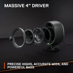 - Massive 4″ drivers emit crystal-clear highs, vibrant mids, and powerful lows