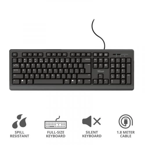 Trust T23893, Durable Classic Keyboard W/ Spill Resistance, Black
