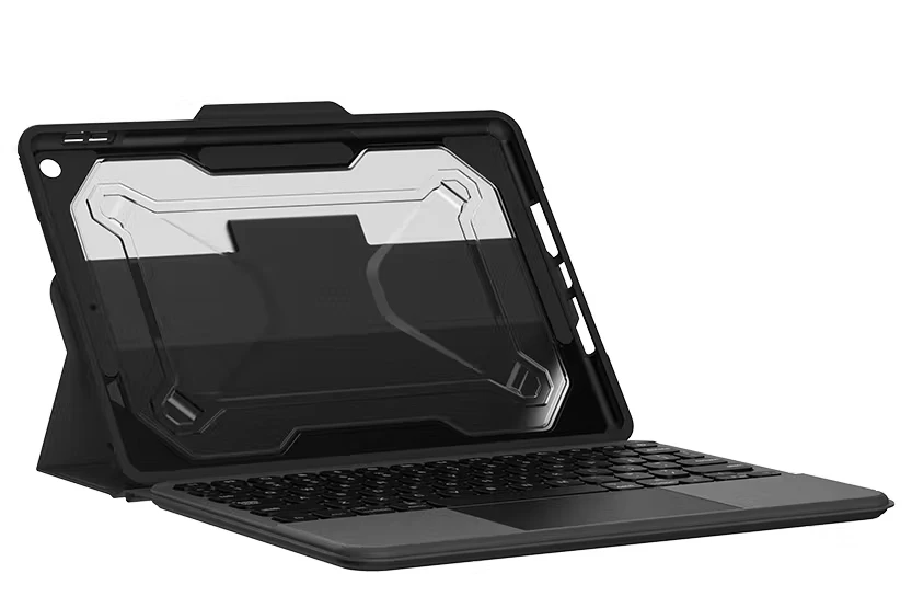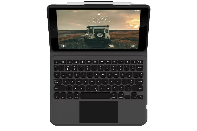 The UAG Rugged Bluetooth Keyboard with Trackpad utilizes a rugged, non-slip exterior and other premium features that represent UAGโs commitment to protection. With Bluetooth connectivity, the rugged keyboard offers a superior laptop-style typing experience and tracking. Featuring a spill-resistant keyboard with comfortably spaced backlit keys. Extra-large multi-touch trackpad with gesture support so you can swipe, tap, pinch, and scroll. Laptop-like experience with the adjustable magnetic stand that offers four viewing modes that let you type, view, sketch, or read. A rechargeable long-lasting battery that allows up to 6 months of battery life (depending on usage). Premium tactical grip exterior provides secure handling. Apple Pencil storage so you can have your Pencil close and handy. Work from anywhere with the UAG Rugged Bluetooth keyboard and detachable case.
