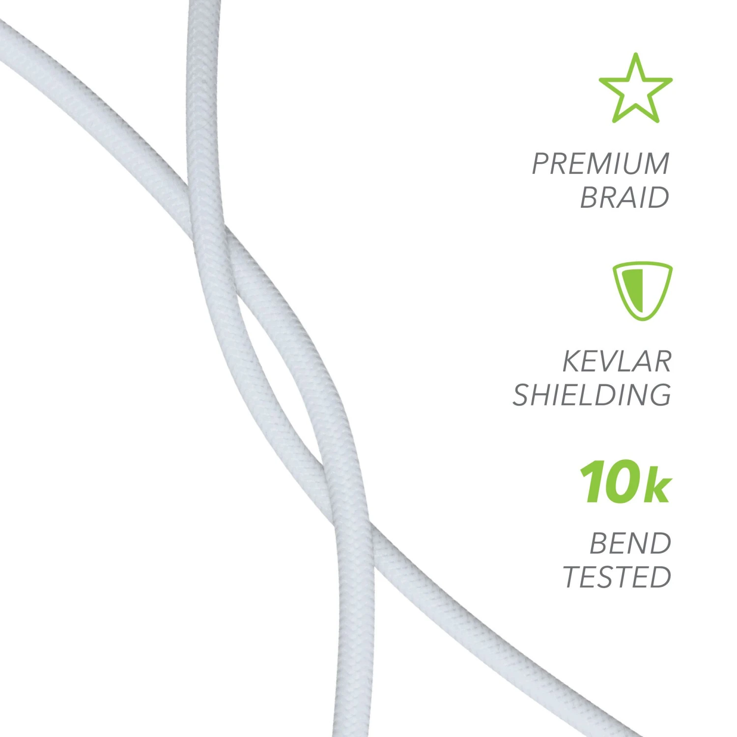 - Tested to withstand 10,000 bends and reinforced with Kevlar shielding for maximum durability