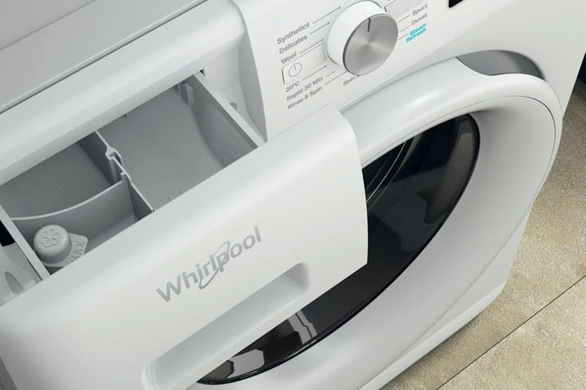 Give your clothes the care they deserve with this washing machine from Whirlpool. It has a 8kg drum, making it ideal for medium-sized households. A super handy 20 min Steam Refresh cycle can be used to quickly get rid of odors and creases in clothes only worn once, or for cooking smells and even while ironing, why not let Steam refresh do some of the work for you. Thanks to innovative 6th Sense technology, the settings adapt to suit each load, making it kinder to the environment, as only the precise amount of energy is used. The new FreshCare+ system gently massages the laundry with regular slow movements alternated with steam actions – letting air circulate inside the fibers to keep garments fresh and prevent bad odours. FreshCare+ treatment leaves truly fresher clothes and peace of mind – even hours after the end of the cycle.