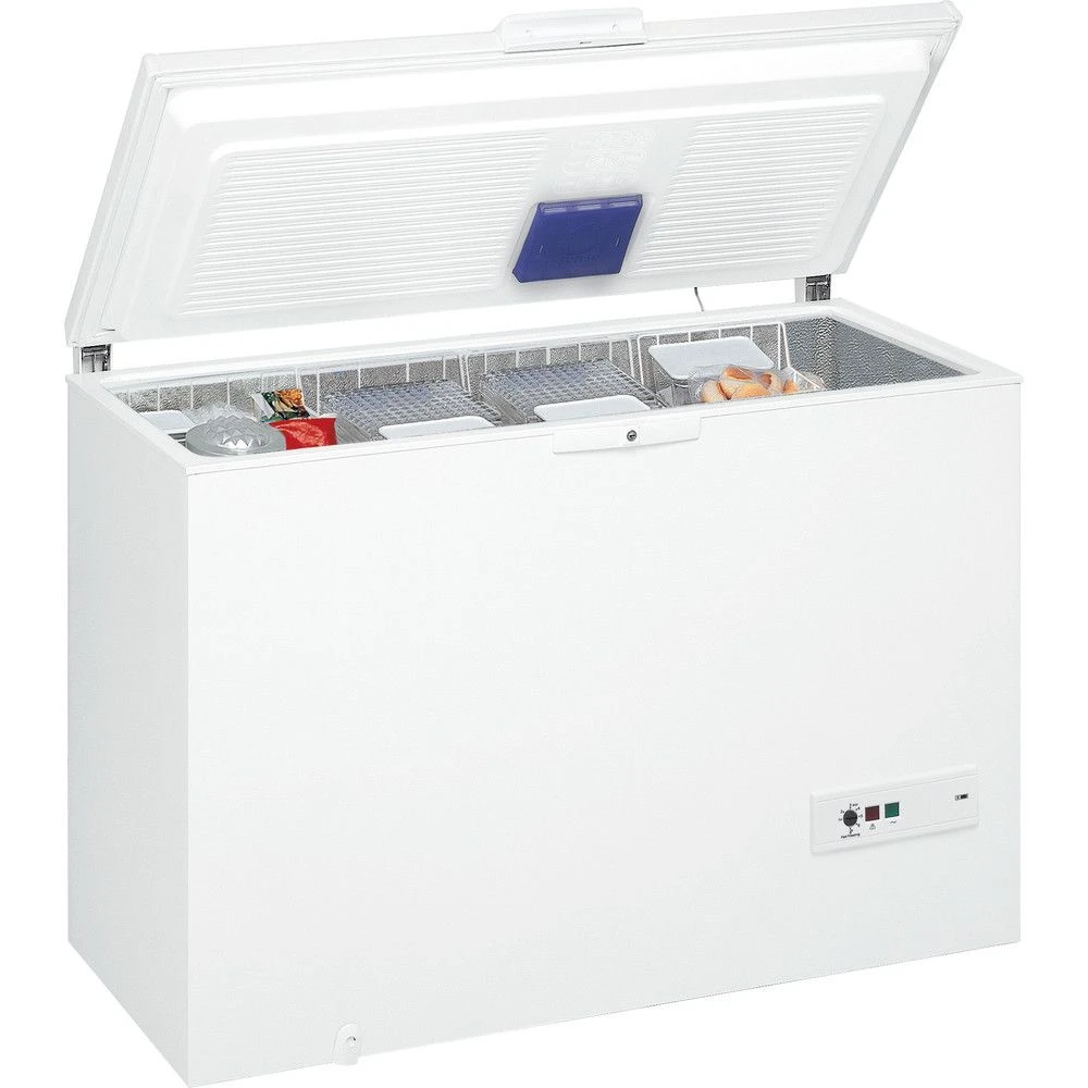 Store your frozen ingredients and meals in this freestanding chest freezer from Whirlpool. With a spacious 437 litre capacity, it holds 23 bags of your weekly shopping. And to make sure it stays in perfect condition, all it needs is an occasional and simple manual defrosting. You’ll find the interior light handy as it lets you easily find produce and everything you need for lunch or dinner. Plus, the counterbalanced lid makes access extremely easy and safe, so that you can confidently get what you need without concern of it shutting on you.
